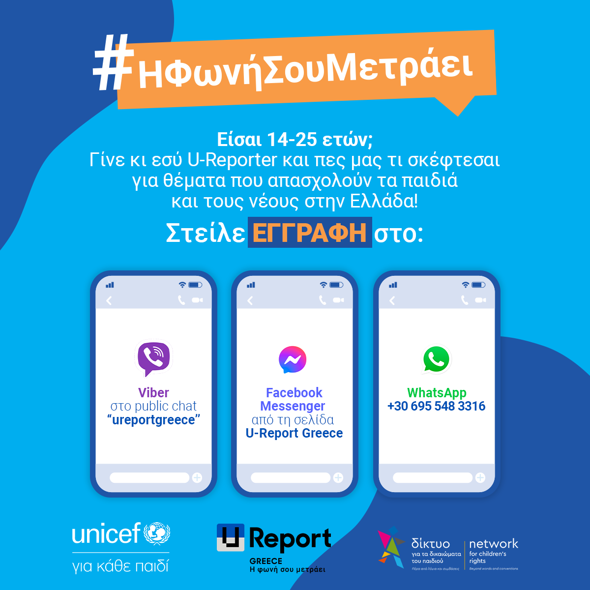 Επισυνάπτεται και βίντεο με οδηγίες για τη συμμετοχή και την υποβολή απαντήσεων. H συμπλήρωση του ερωτηματολογίου στην πλατφόρμα U-Report Greece είναι δωρεάν και είναι διαθέσιμη σε 3 γλώσσες: Αγγλικά, Ελληνικά, Γαλλικά, ενώ από την Παρασκευή 27/1 θα αναρτηθεί και σε 3 γλώσσες επιπλέον: Αραβικά, Ουρντού και Φαρσί. Το ερωτηματολόγιο είναι ανώνυμο και δεν απαιτεί γονική συναίνεση.